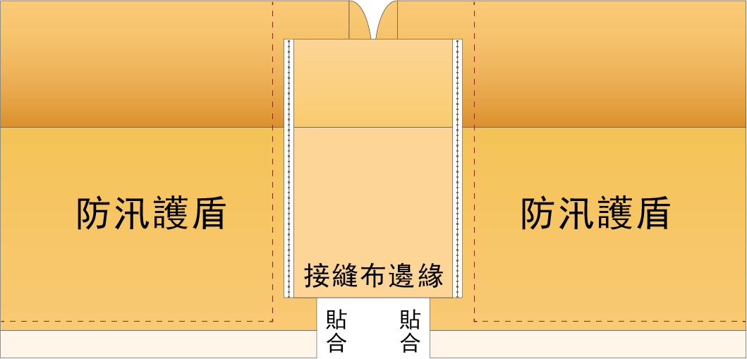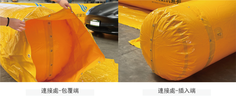 在防汛護盾之間的連接處需要使用接縫布來連接,以強力魔鬼氈相黏,防止積水滲透。
