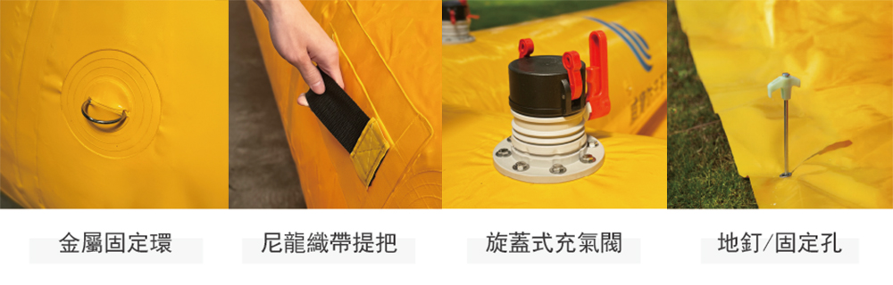 ・零件結構:金屬固定環、尼龍織帶提把、旋蓋式充氣閥、地釘
