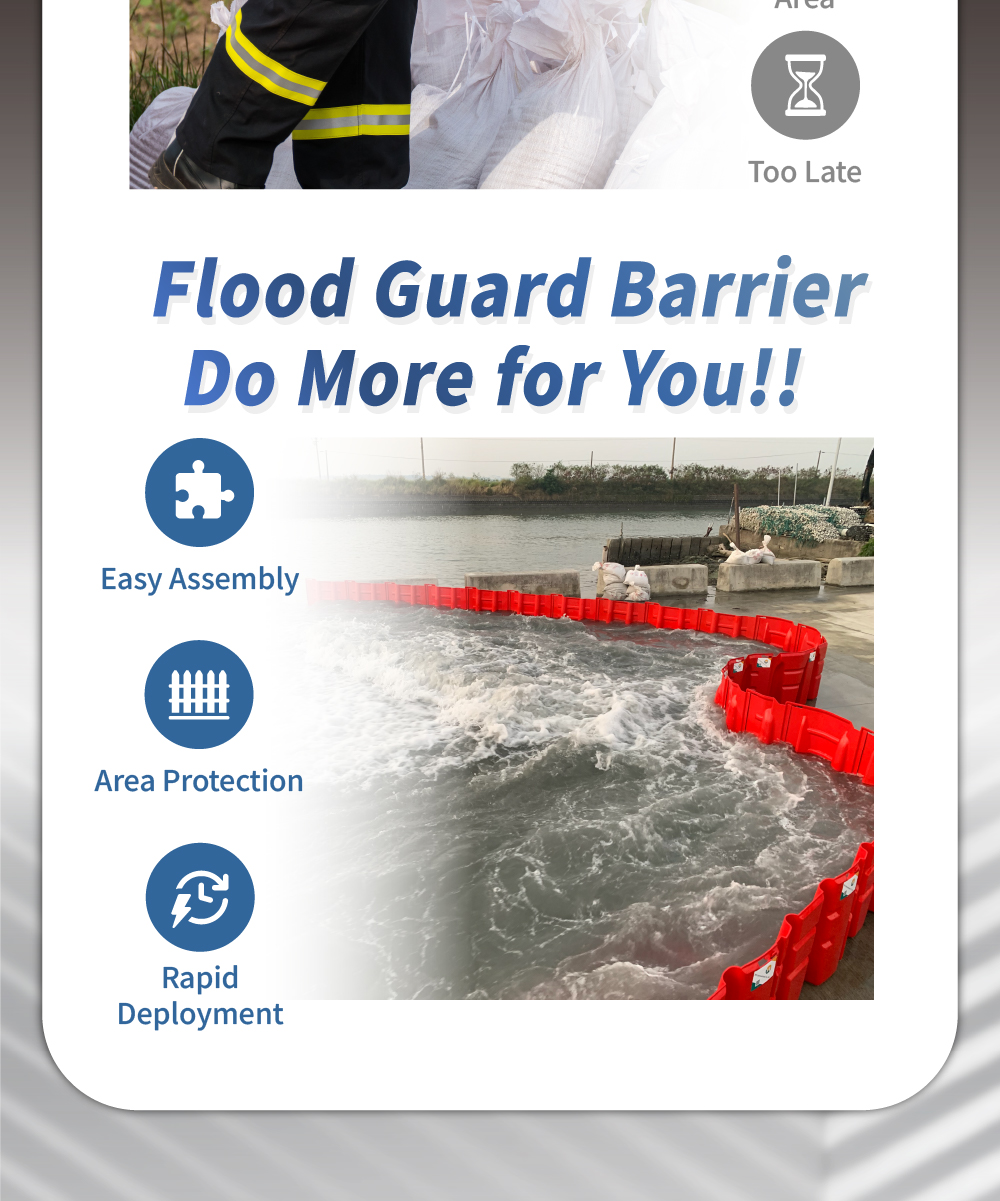 Each Flood Guard Barrier weighs only 5.8 kg and can be quickly deployed by one person with simple steps. ✅Stable Flood Protection