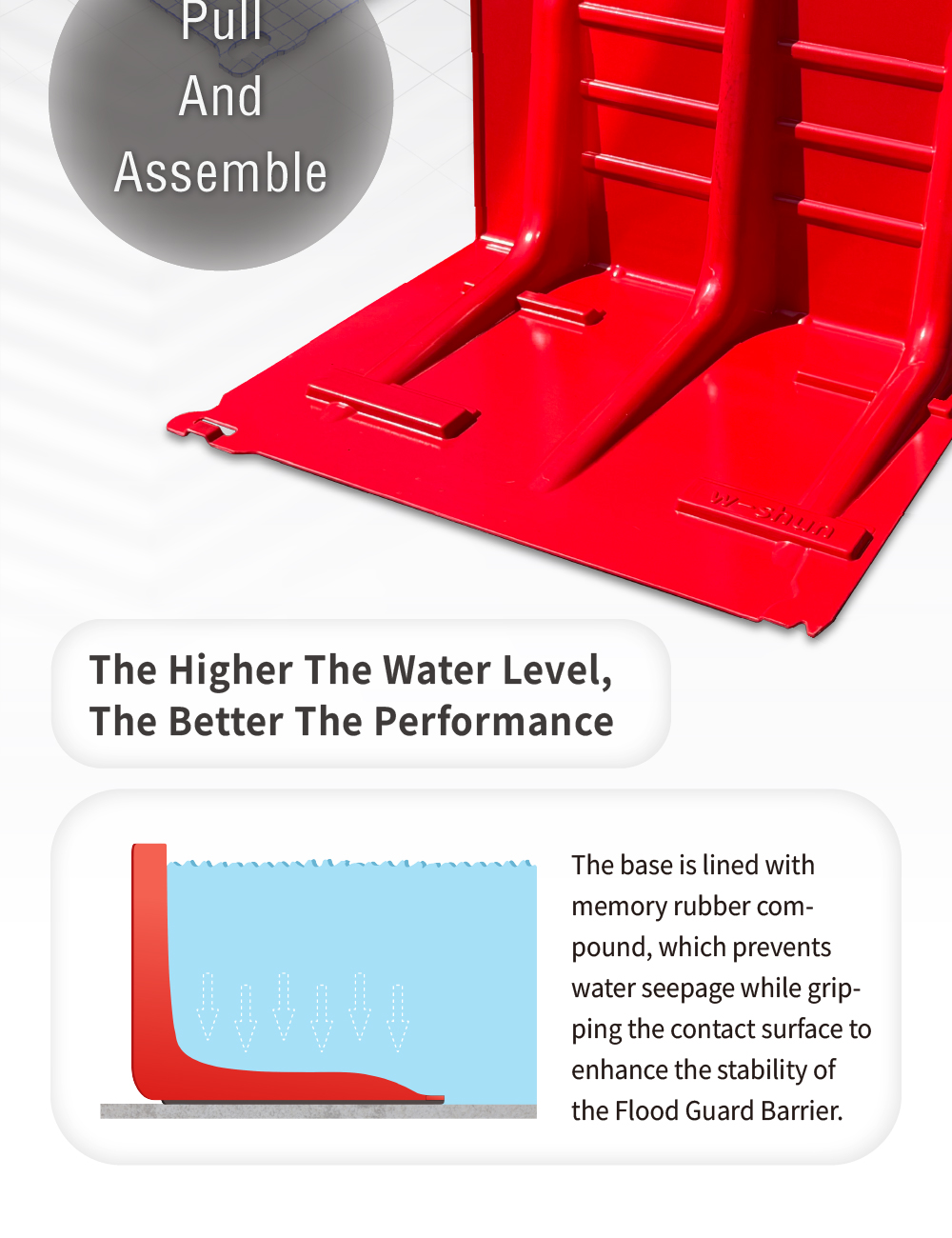 Made of ABS panels that resist being washed away, the barrier uses an L-shaped bookend principle—holding even stronger as water levels rise. ✅No Groundwork Required